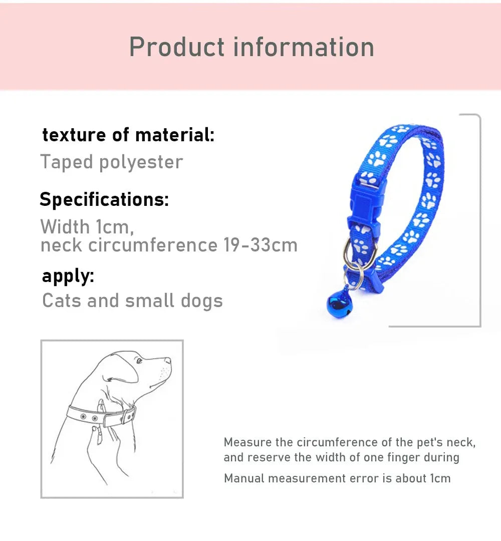 1/6/18pcs Pet Collar With Bell, Cartoon Footprints, Colorful Dog And Cat Collar, Adjustable Bell Ring Necklace, Pet Accessories