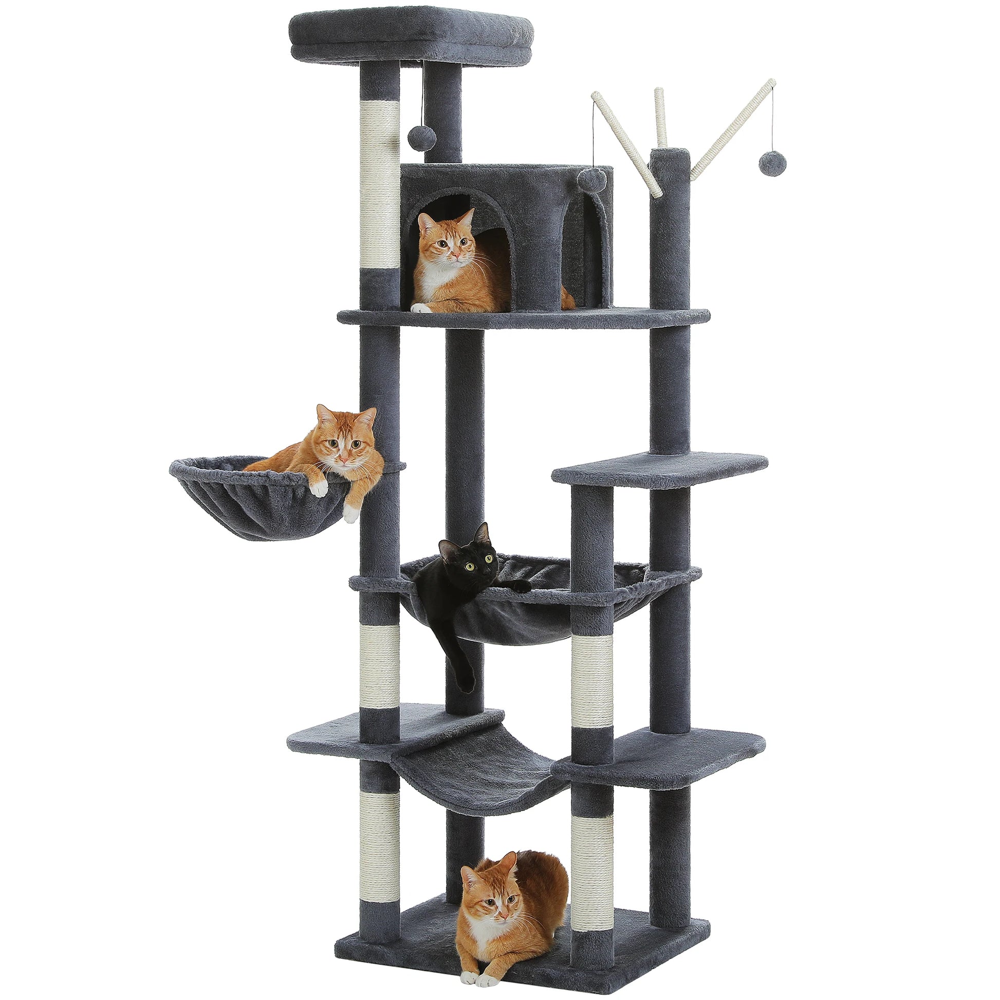 Árvore de gato de vários níveis com postes de arranhões, condomínio de gato, rede grande, torre de gato grande moderna para gatos internos, acessórios para gatos