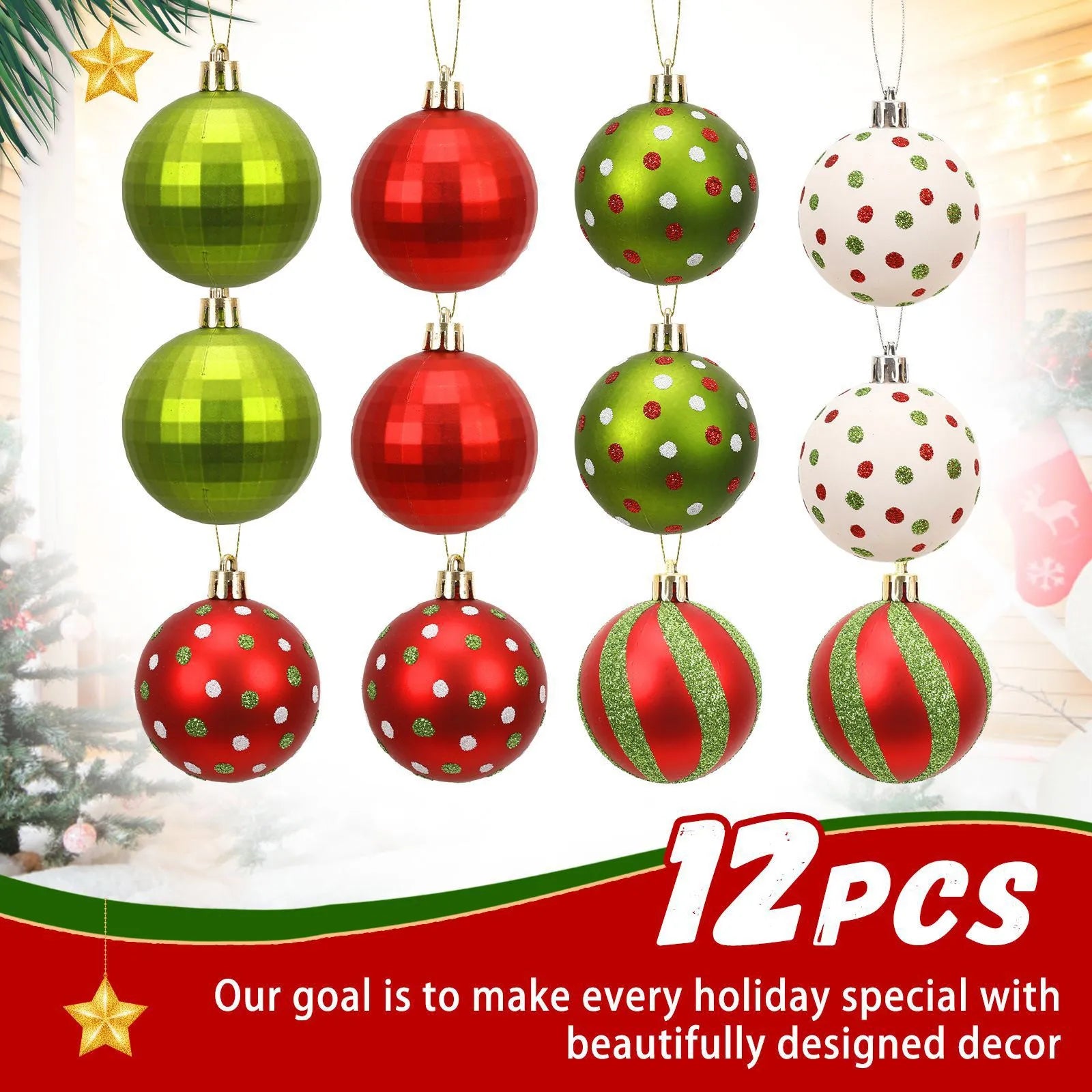 Christmas Ornaments 12Pcs Red Green Christmas Decoration Christmas Balls Xmas Tree Decor Festive Ornaments Holiday Decor