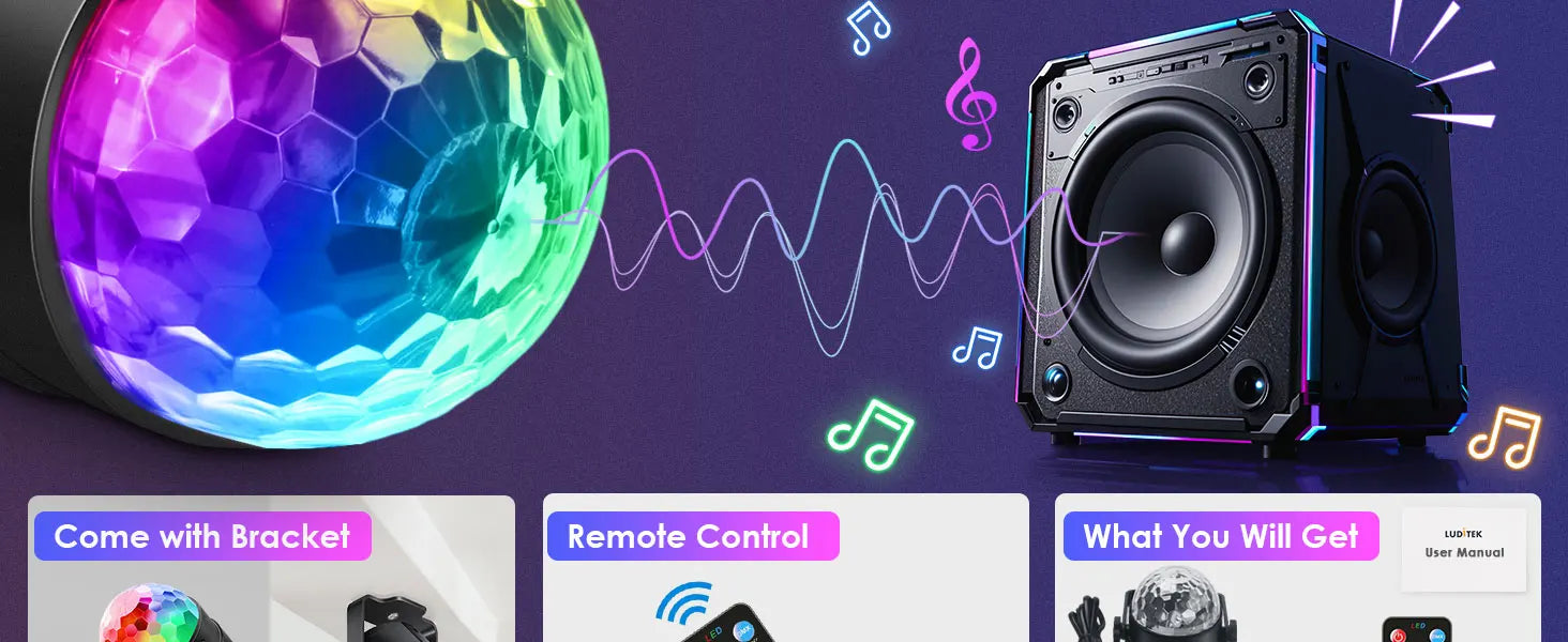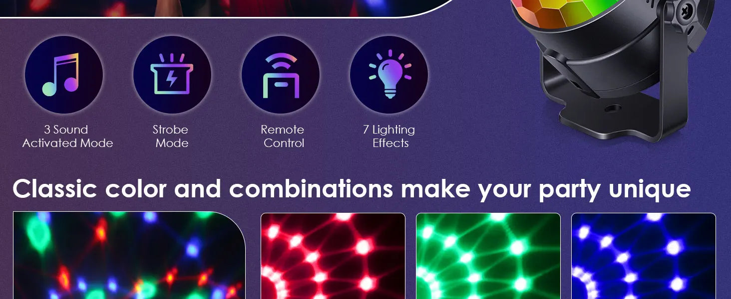 Luz de bola de discoteca led ativada por som rgb com controle remoto rotativa lâmpada de palco dj para casa carro festa clube decoração de natal