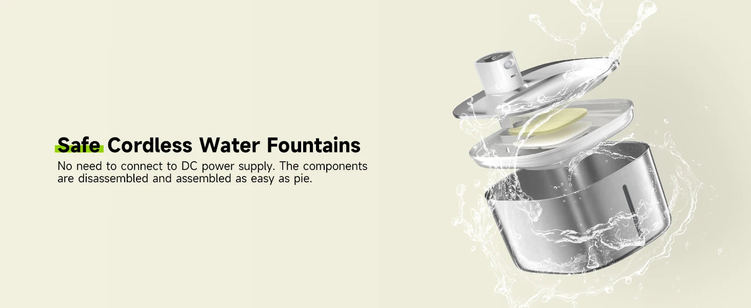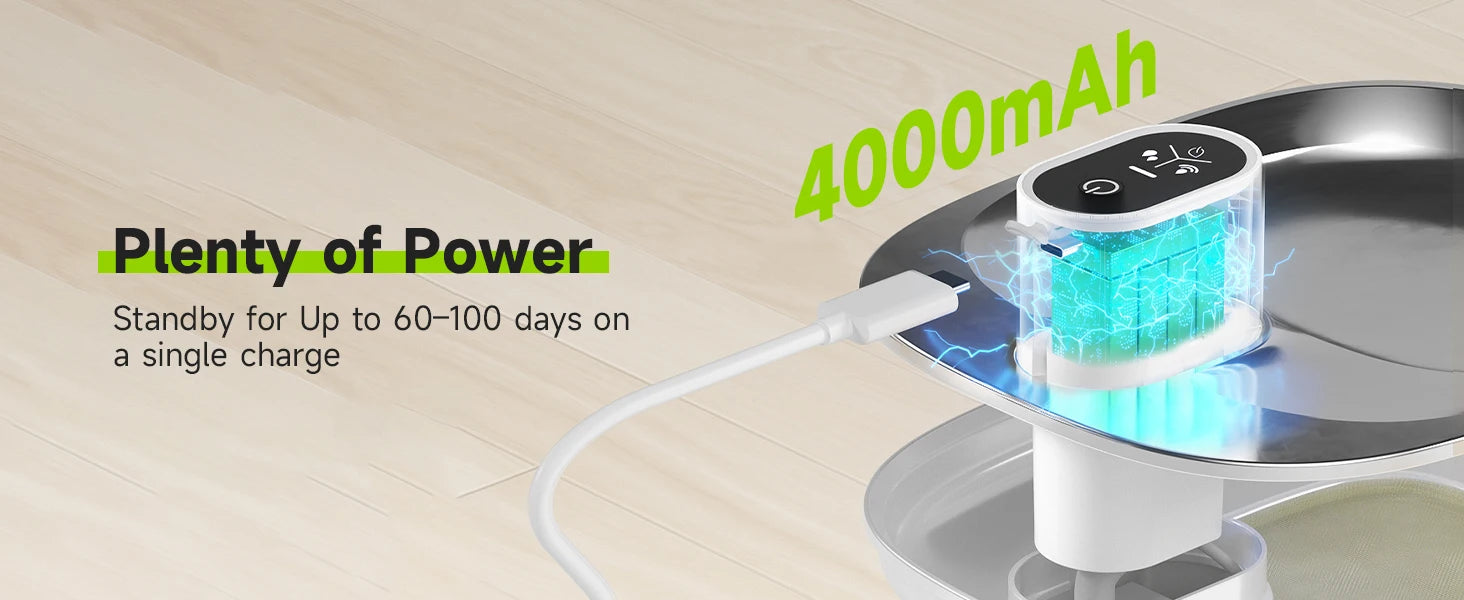 Wireless Cat Water Fountain Stainless Steel 135floz/4L Battery Operated Automatic Cordless Cat Water Dispenser Pet Fountain
